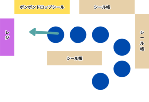 雑な図解だけど、先頭からこんな形で順番にお店に入り、前の人から順番にシールを選んでいきます。
